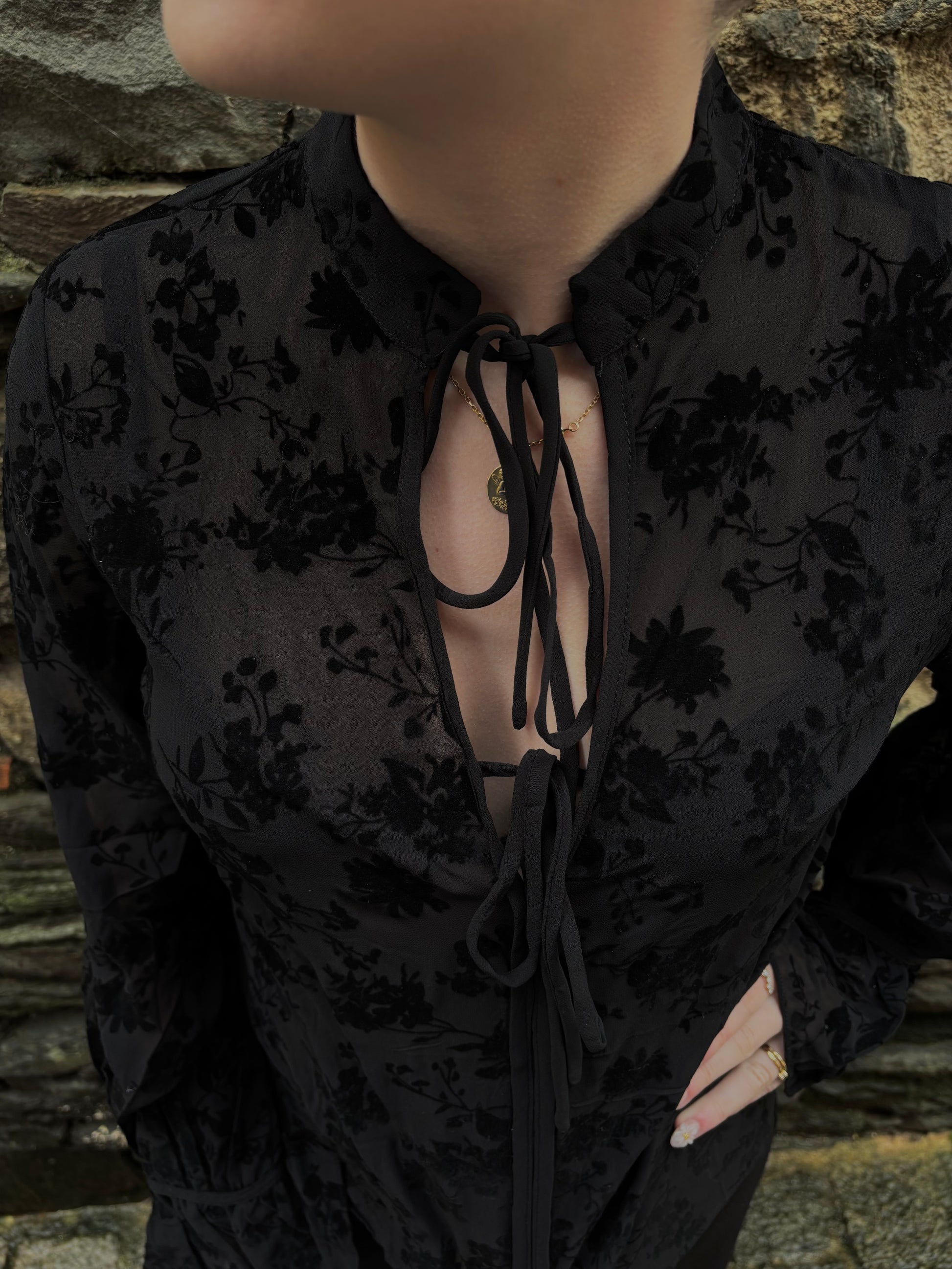 CHEMISIER NOIR FLEURS